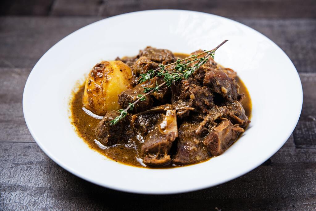 Curry Goat, Oxtail Stew, Festival (sweet fried dumplings)